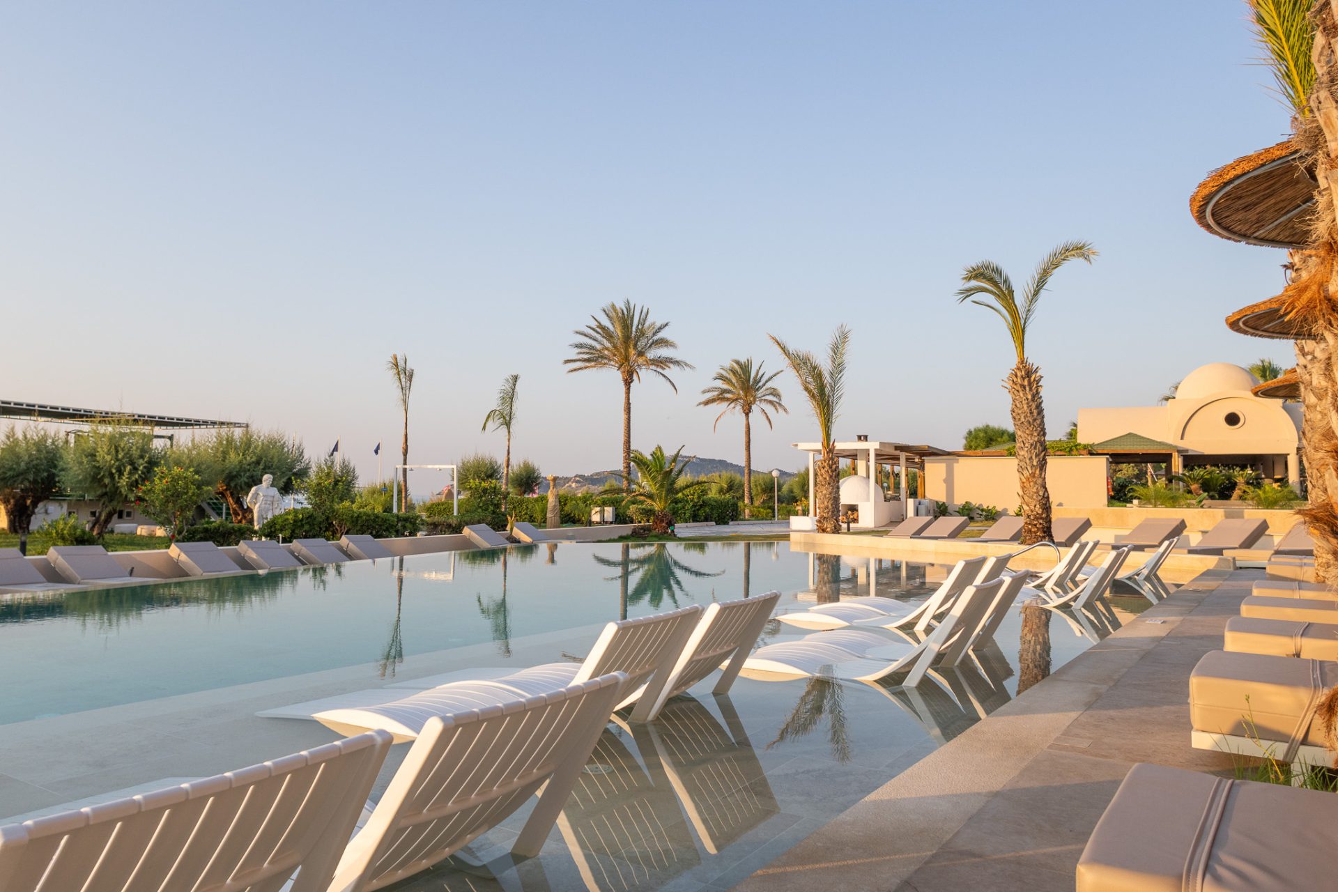 The hotel’s stunning “Pearl” Pool Bar serves a range of mouthwatering fresh cocktails and juices. Sip your favorite drink while admiring a gorgeous view of the Aegean Sea.