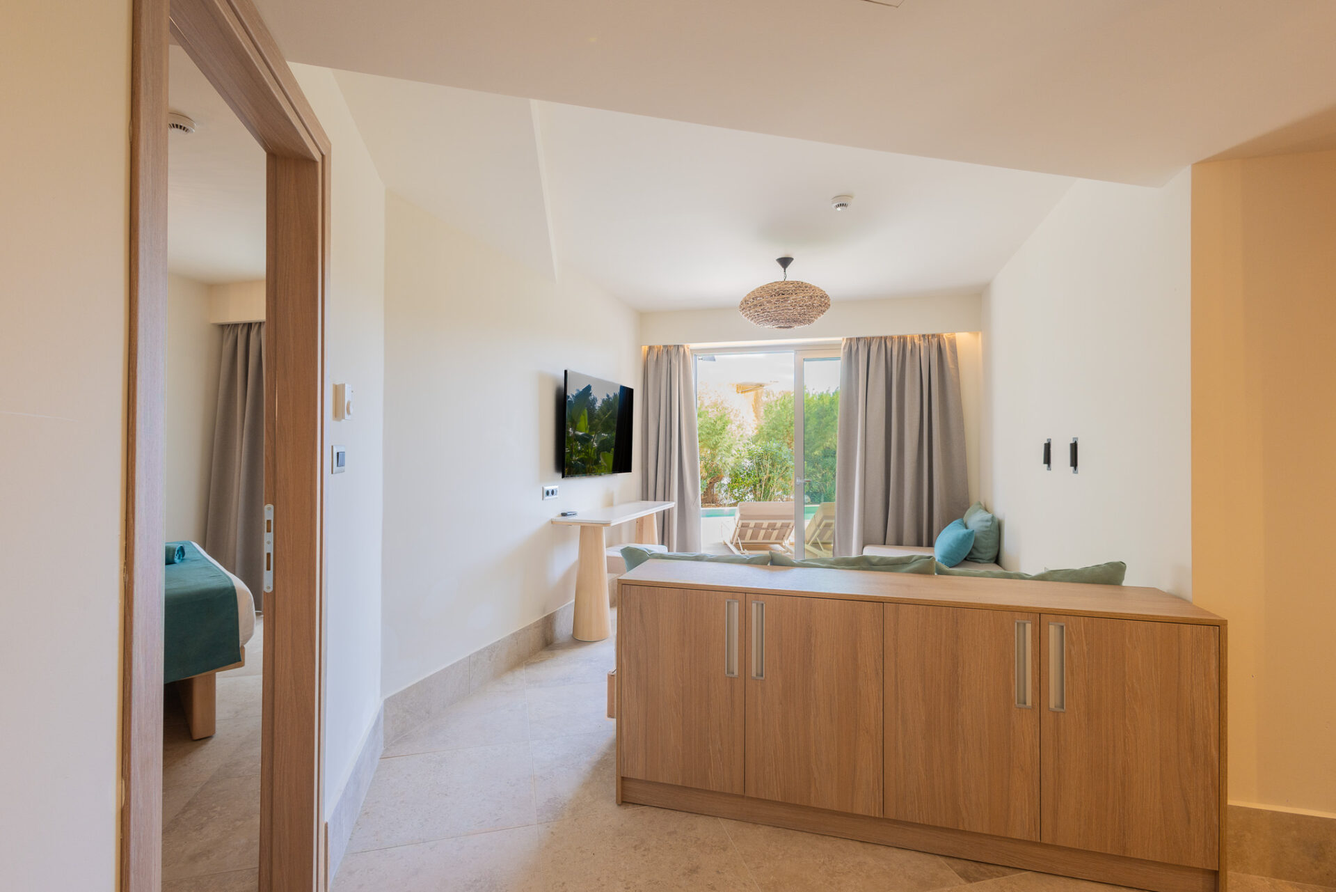 Discover the perfect balance of elegance and connection in our Executive Suite with Sharing Pool. This stylish, spacious suite features a beautifully designed bedroom, a chic living area, and a private terrace just steps from a serene shared pool. Guests can unwind in refined comfort while enjoying the lively yet relaxed ambiance of a pool shared with neighboring suites. Ideal for couples, friends, or small families seeking both privacy and a social atmosphere, the Executive Suite with Sharing Pool offers a unique blend of luxury and community.