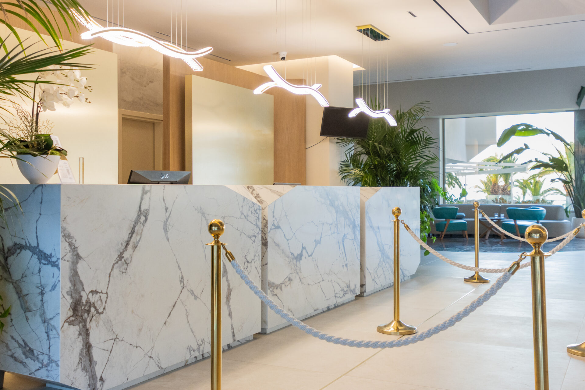 Our comfortable lobby offers a relaxing time under the lights of the Murano chandelier. Read a book or enjoy your evening drink or a delicious cocktail while listening to the hotel’s music or the live music several times a week.